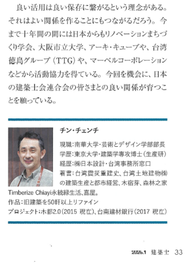 建築専門誌「建築士」1月号で、南華大学の陳先生が、